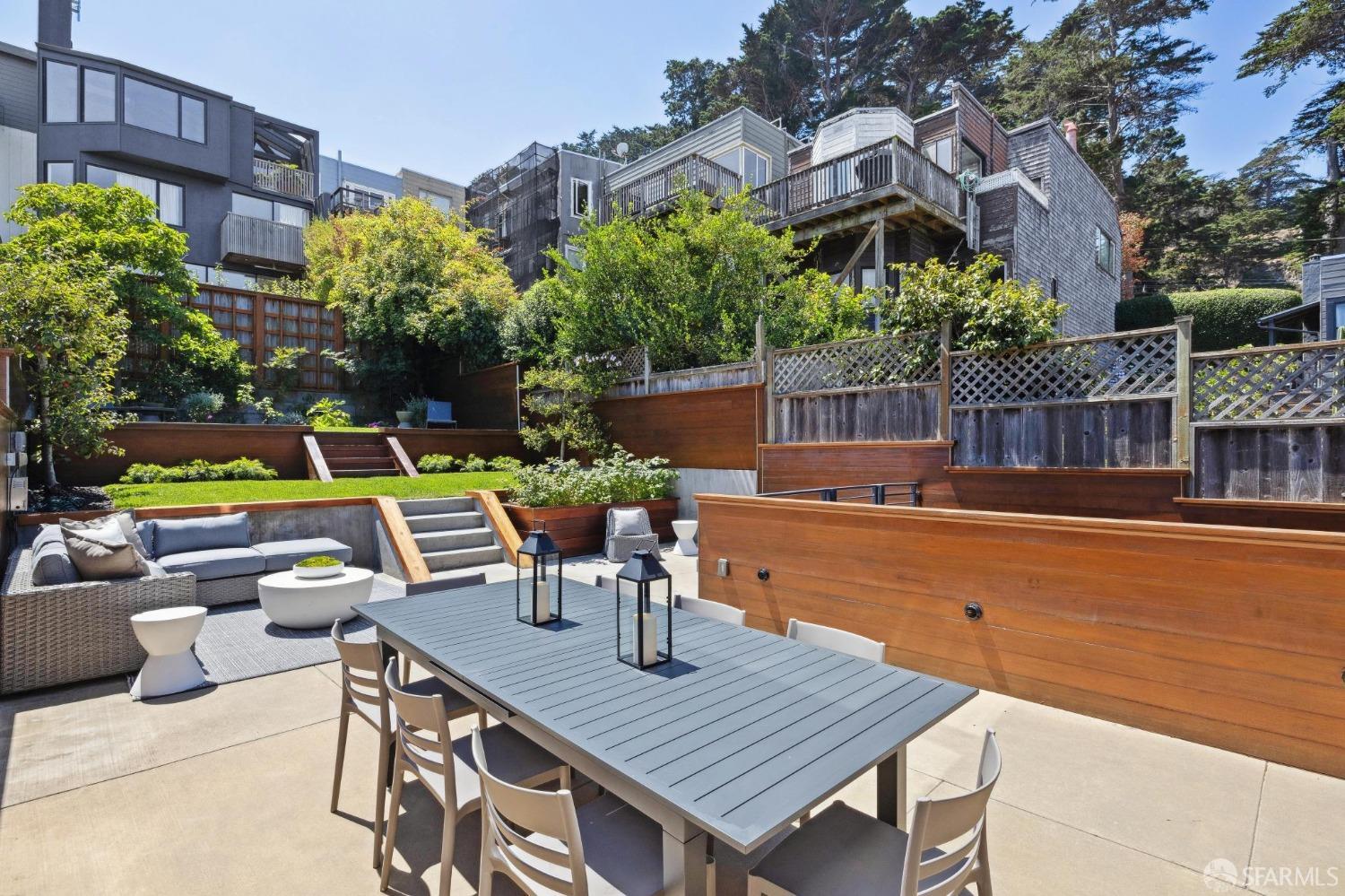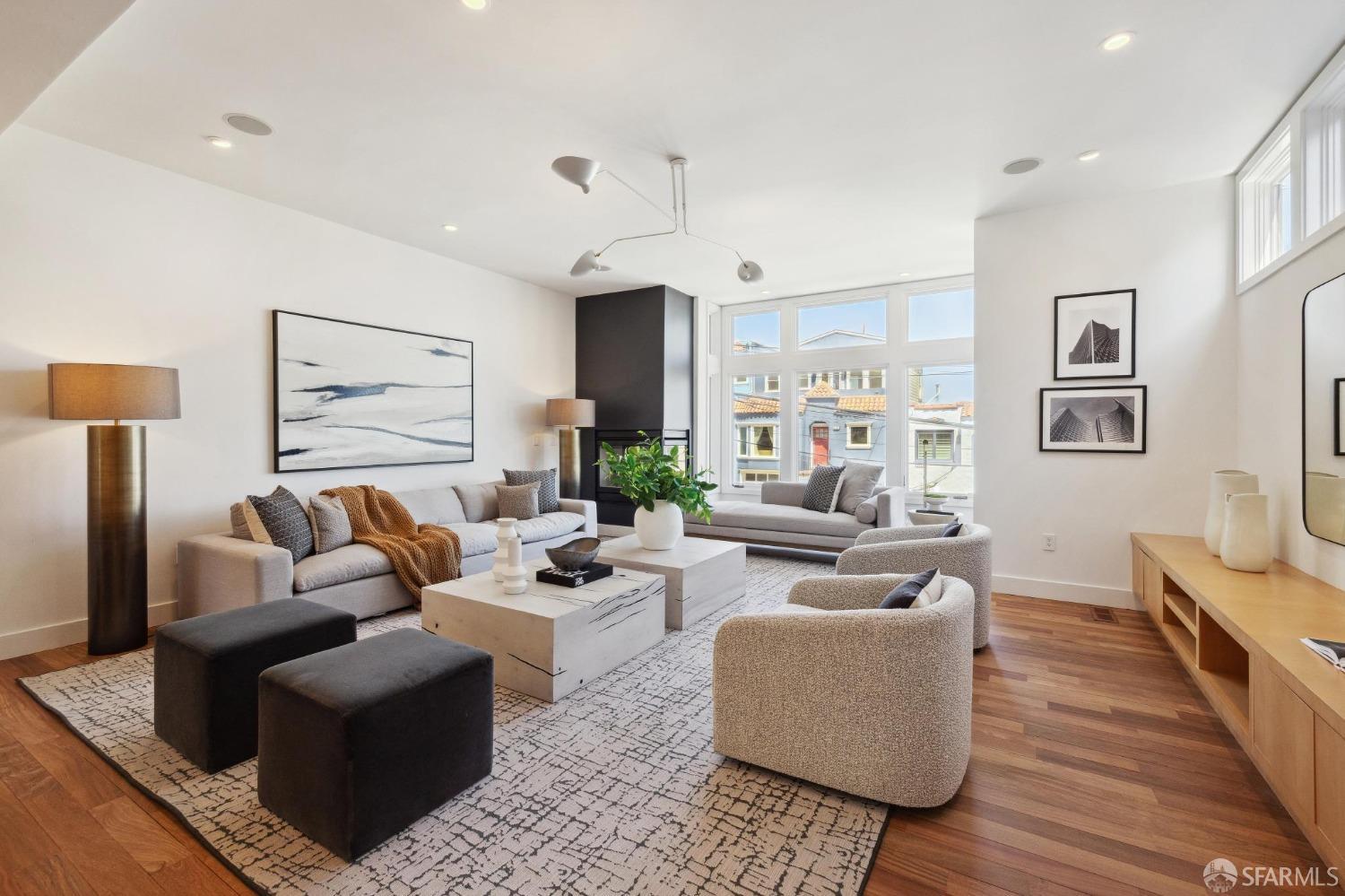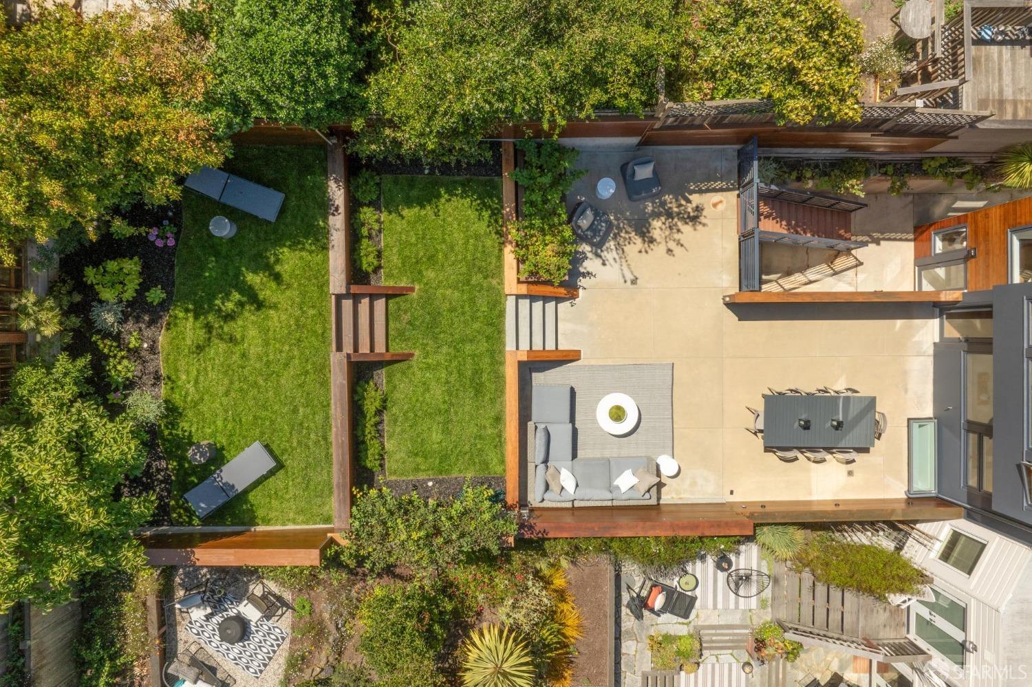 Modern Noe Valley home exquisitely designed to accentuate grand scale, indoor-outdoor flow, natural light, and panoramic San Francisco views. Built in 2006 and created by award-winning Mark Brand Architecture, the home is distinguished and inspired by cubic massing, well-proportioned forms and harmonious natural materials. Impressive scale and flow throughout the living areas, which include 10-foot ceilings, large windows, and direct access to deep south-facing garden and entertainment/lounge spaces. Bright natural light streams through large, carefully arranged windows optimizing outlooks and views. Rich Brazilian teak flooring creates a remarkable feeling of organic elegance throughout the home, elevating movement through the living spaces. A well-appointed chef's eat-in kitchen offers an abundance of storage and prep space, luxury brand appliances, and a wall of glass draping the space with direct sunlight throughout the year and providing spectacular views outdoors to the deep garden and outdoor entertainment and gardening spaces. An impressive primary suite features a bespoke spa-bath, cavernous walk-in closet, and large private deck with panoramic SF views. Upgrades include rooftop solar power system, Tesla Power Wall, Level-1 (fast) EV charger, and Air Conditioning.